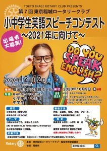 東京稲城ロータリークラブでは、昨年に引き続き第8回小中学生英語スピーチコンテストを開催いたします。