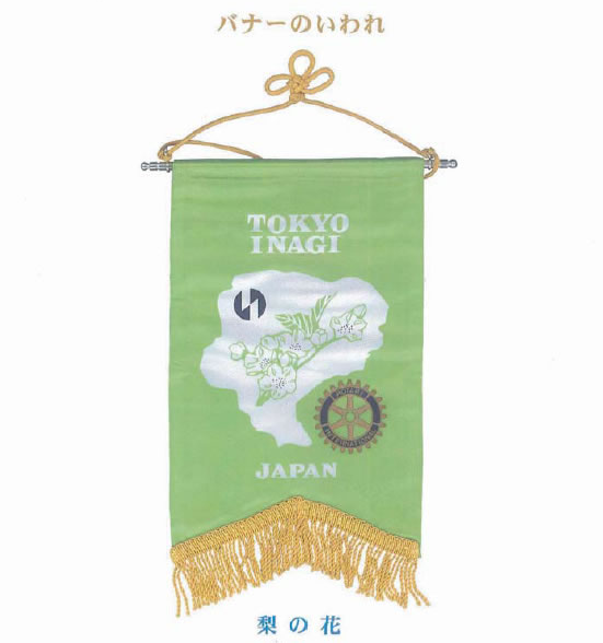 むかしから、この地の代表的な果物には、梨、栗、柿、などがあり、そして、四季咲き乱れる花の中でも淡泊で清純な多摩川の花は稲城のイメージにいちばんぴったりしています。そこでこのバナーのデザインは、稲城市の白地の地図の中に、市章と共に、この梨の花をあしらいました。